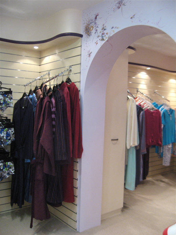Magasin de lingerie à Château-Gontier (53). En partenariat avec Lydie Gatignol, architecte d’intérieur. Décoration sur le thème “Fleur de dentelle”…que de la douceur pour Vous. Le décor suit les lignes, les volumes, navigue sous les voûtes pour vous susurrer de la poésie dans les lieux d’essayage.